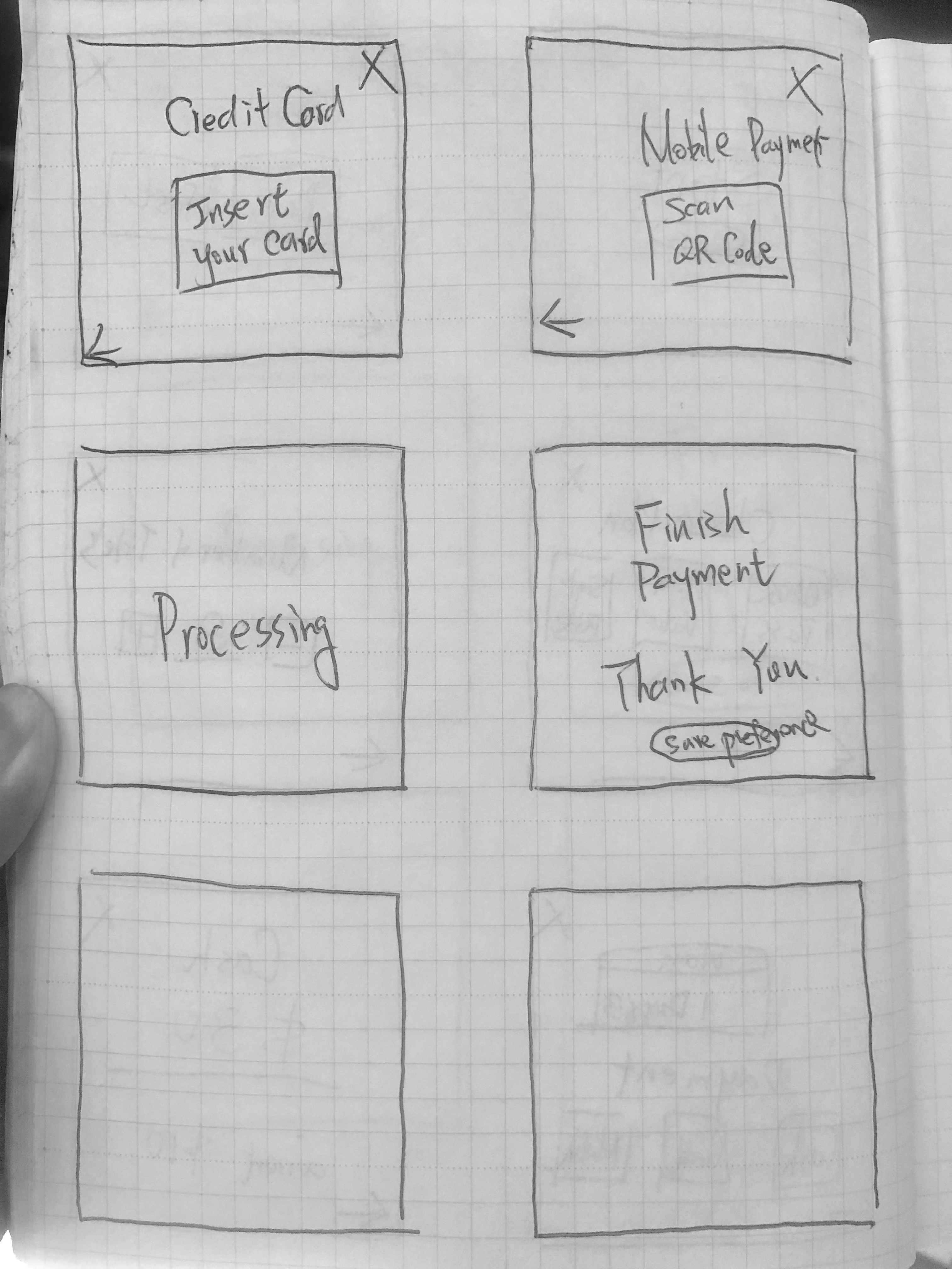 The kiosk has a 10’’ square touch screen. We will only do the basic function of payment (cash, credit card, and mobile payment).